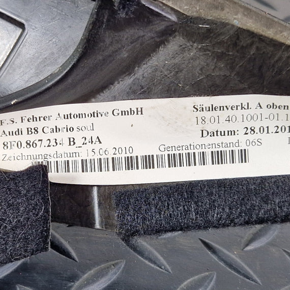 12-17 AUDI S5 CONVERTIBLE DRIVERS A PILLAR TRIM BLACK RIGHT 8F0867234B