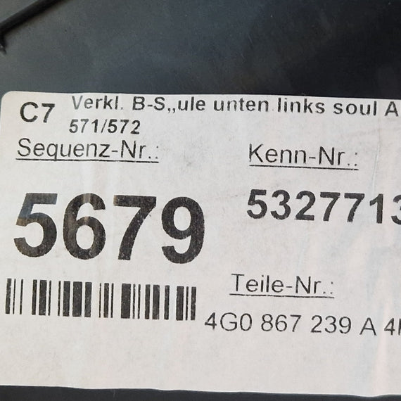 12-18 AUDI A6 C7 B PILLAR COLUMN INTERIOR TRIM LOWER PANEL LEFT N/S 4G0867239A