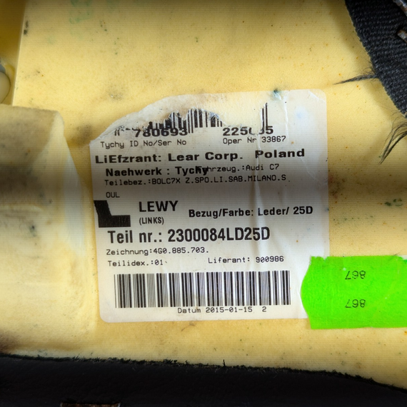 12-18 AUDI A6 C7 GENUINE PASSENGER SIDE LEFT REAR BOLSTER & SAFETY BAG 4G0885703