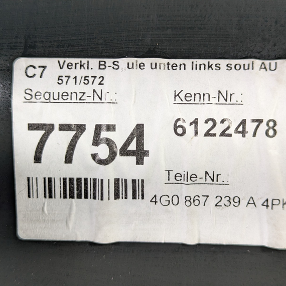 12-18 AUDI A6 C7 PASSENGER LEFT SIDE B-PILLER INTERIOR TRIM 4G0867239A