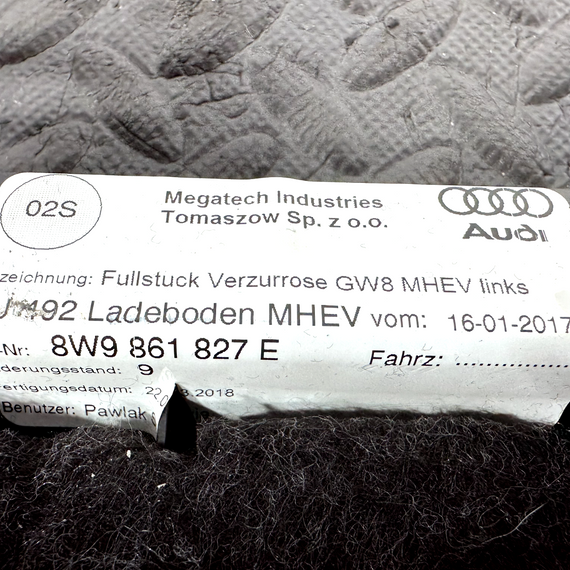 16-19 AUDI A4 B9 GENUINE REAR LEFT BOOT INTERIOR FLOOR TRIM PANEL 8W9861827