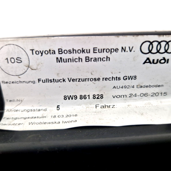 16-19 AUDI A4 B9 GENUINE REAR RIGHT BOOT INTERIOR FLOOR TRIM PANEL 8W9861828