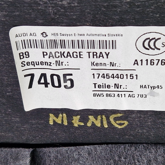 16-19 AUDI A4 B9 S-LINE OEM GENUINE REAR PARCEL SHELF 8W5863411AG