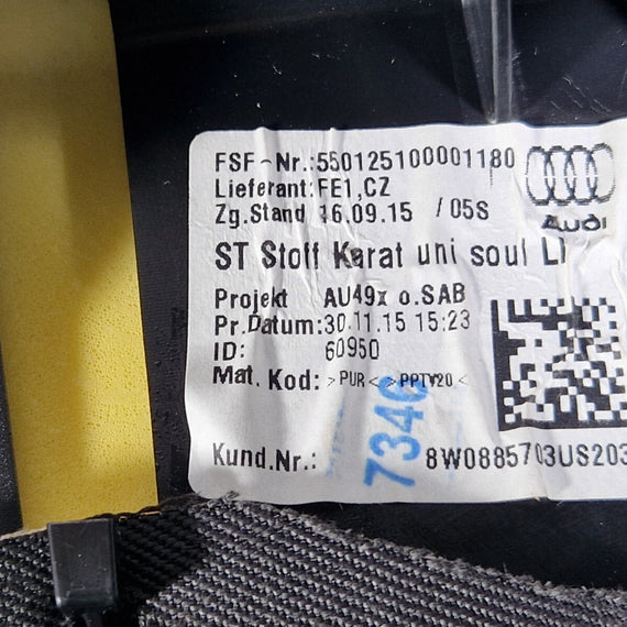 16-19 AUDI A4 B9 SALOON GENUINE REAR LEFT PASSENGER SIDE CLOTH BOLSTER 8W0885703