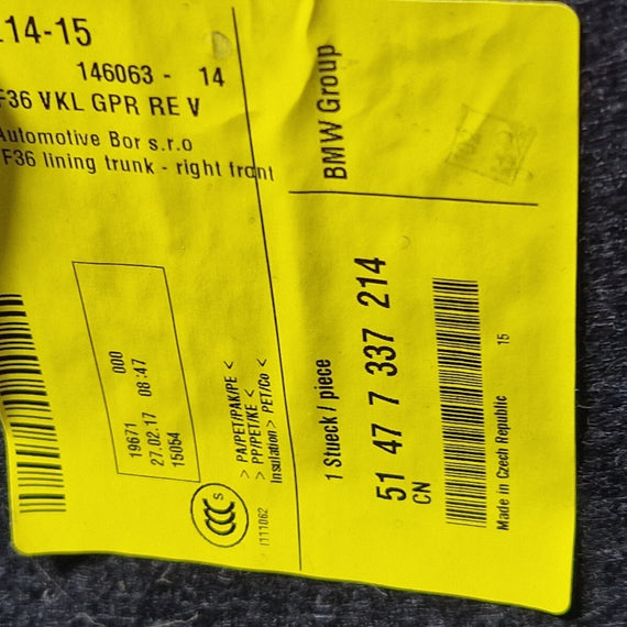 12-18 BMW 4 SERIES F36 M-SPORT RIGHT DRIVER SIDE BOOT TRIM COVER 7337214