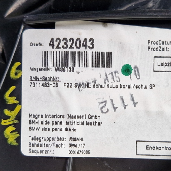 14-16 BMW 2 SERIES F22 OEM REAR LEFT PASSENGER HALF RED DOOR CARD PANEL 7311483