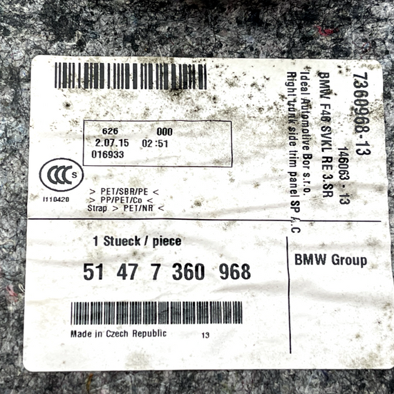 14-21 BMW 2 SERIES F45 F46 GENUINE REAR RIGHT BOOT SIDE PANEL TRIM 7360968