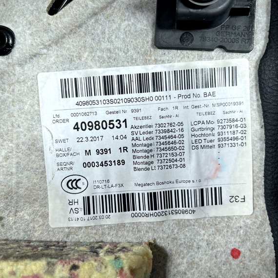 BMW 4 SERIES F32 REAR RIGHT BLACK LEATHER DOOR PANEL (H/K COVER) 7302762