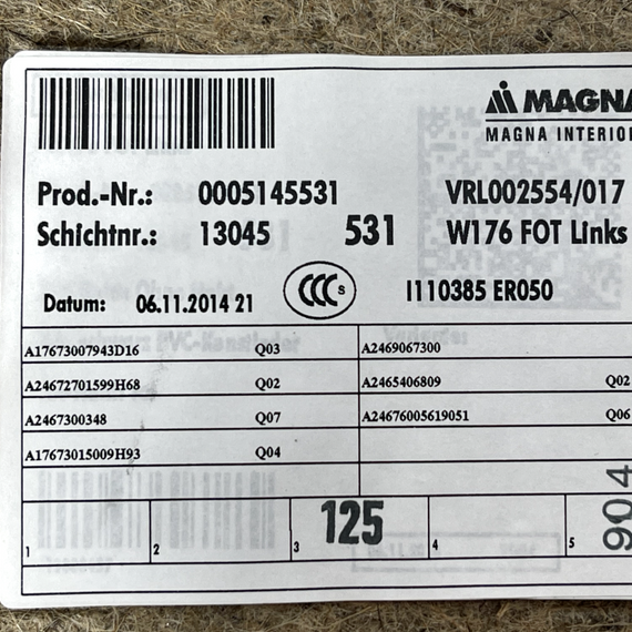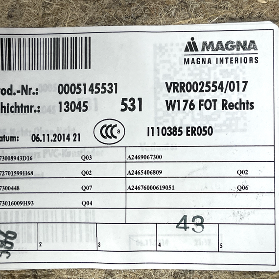 12-18 MERCEDES BENZ A CLASS W176 GENUINE DOOR CARD REAR PASSENGER LEFT SIDE