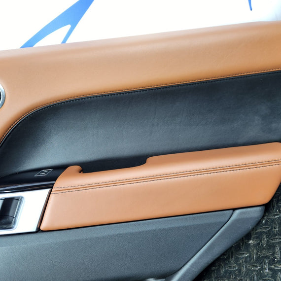 13-23 RANGE ROVER SPORT L494 OEM REAR RIGHT O/S/R BROWN LEATHER DOOR CARD PANEL