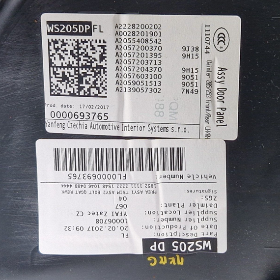 14-21 MERCEDES BENZ C200d W205 FRONT LEFT DOOR CARD PANEL A2228200202