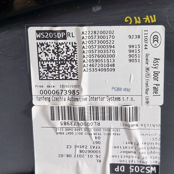14-21 MERCEDES BENZ C220d W205 REAR LEFT SIDE DOOR CARD PANEL A2057300594