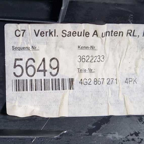 10-18 AUDI A7 4G S-LINE FRONT LEFT INTERIOR A PILLAR SILL TRIM PANEL 4G2867271