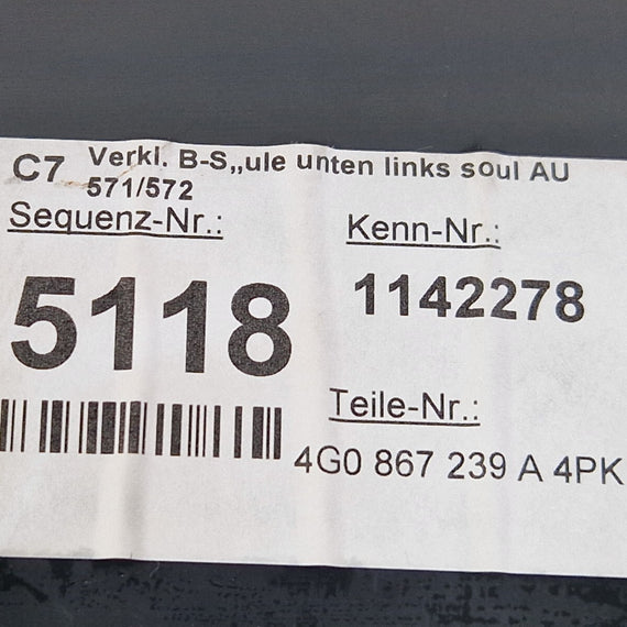 12-18 AUDI A6 C7 PASSENGER LEFT SIDE B-PILLER INTERIOR TRIM 4G0867239A