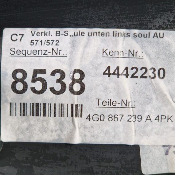 12-18 AUDI A6 C7 PASSENGER LEFT SIDE B-PILLER INTERIOR TRIM 4G0867239A