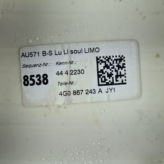 12-18 AUDI A6 C7 PASSENGER PILLAR INTERIOR TRIM UPPER PANEL 4G0867243 4G8867293