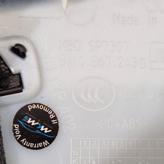 16-19 AUDI A4 AVANT B9 S-LINE LEFT PASSENGER SIDE B-PILLAR TRIM COVER 8W0867243