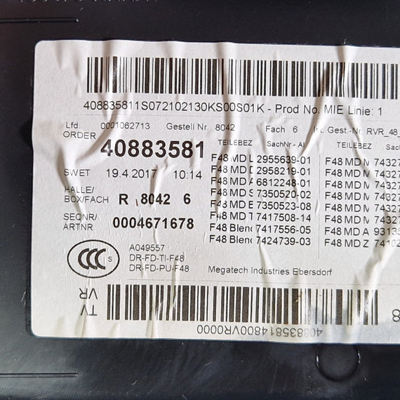 16-22 BMW X1 F48 OEM DOOR CARD FRONT RIGHT O/S TRIM PANEL COVER LINING 9348585