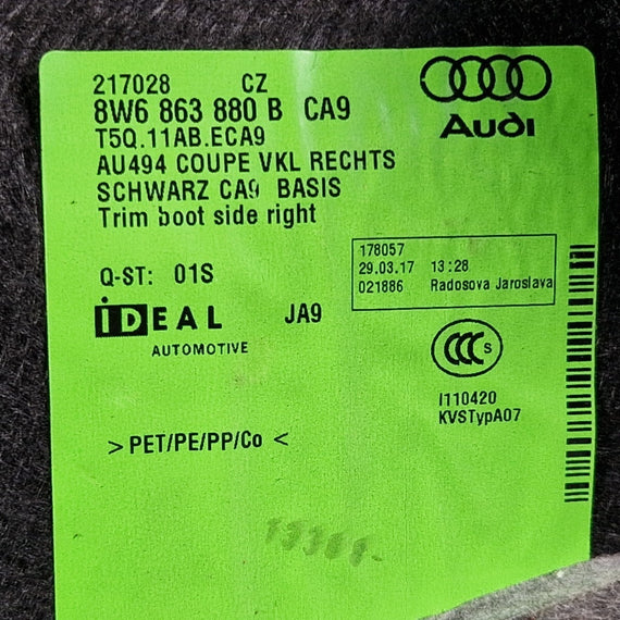 16-23 AUDI A5 F5 SPORTBACK REAR RIGHT BOOT SIDE COMPARTMENT TRIM 8W6863880B