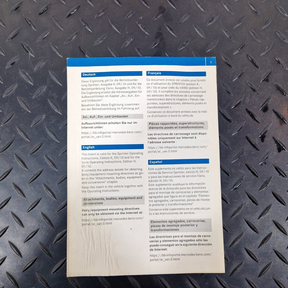 06-17 MERCEDES SPRINTER W906 OPEARATING MAINTENANCE MANUAL INSTRUCTIONS BOOKLET