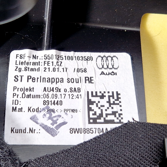 16-23 AUDI A5 F5 S-LINE REAR RIGHT O/S/R SEAT LEATHER BLACK BOLSTER 8W0885704AJ