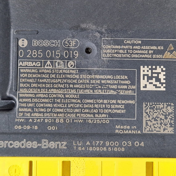 19-ON MERCEDES BENZ B CLASS W247 AIRBAG CONTROL UNIT ECU A1779000304