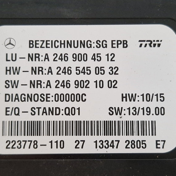 MERCEDES B CLASS W246 HANDBRAKE PARKING BRAKE CONTROL MODULE A2469004512